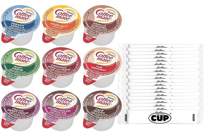 Nestle coffee mate coffee creamer, french vanilla, liquid creamer singles, non dairy, no refrigeration, box of 180. It's lactose free,cholesterol free non dairy creamer. Nestle coffee mate coffee creamer, hazelnut, liquid pump bottle, 50.7 ounces. Discountcoffee.com exclusive flavored variety pack; The creamer singles are packaged in a convenient dispenser box, which keeps the counter clean.